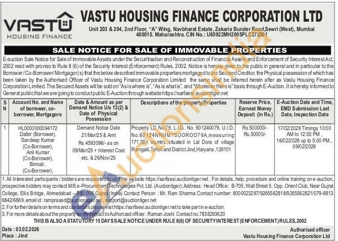 Property LD No.79, L.I.G. No. 601240079, U.I.D. No.60124NRMM1SOORO079A, measuring 171,384 sq.mtrs, situated in Lal Dora of village Ramgalili, Tehsil and District Jind, Haryana, 126101