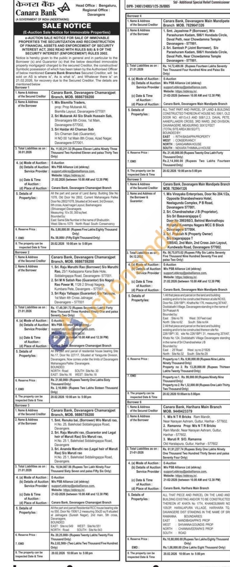 All that piece and parcel on the land and building existing and/or to be constructed thereon site No 226/18P1 30, site No 226/1BP1 31, measuring 20X40 Khata No 124, Doddabathi Village Devanagere standing in the name of Sri Chandrashekar JB