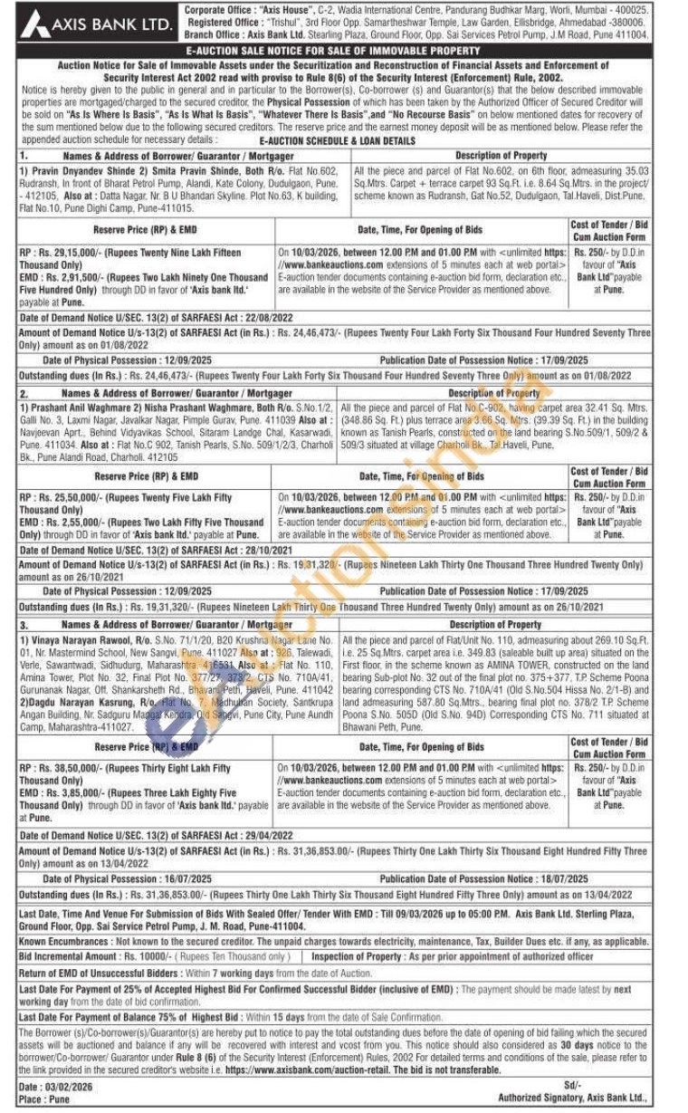 All the piece and parcel of Flat No.602. on 6th floor, admeasuring 35.03 Sq.Mtrs. Carpet + terrace carpet 93 Sq Ft. i.e. 8.64 Sq. Mtrs. in the project/scheme known as Rudransh, Gat No.52, Dudulgaon, Tal. Haveli, Dist. Pune