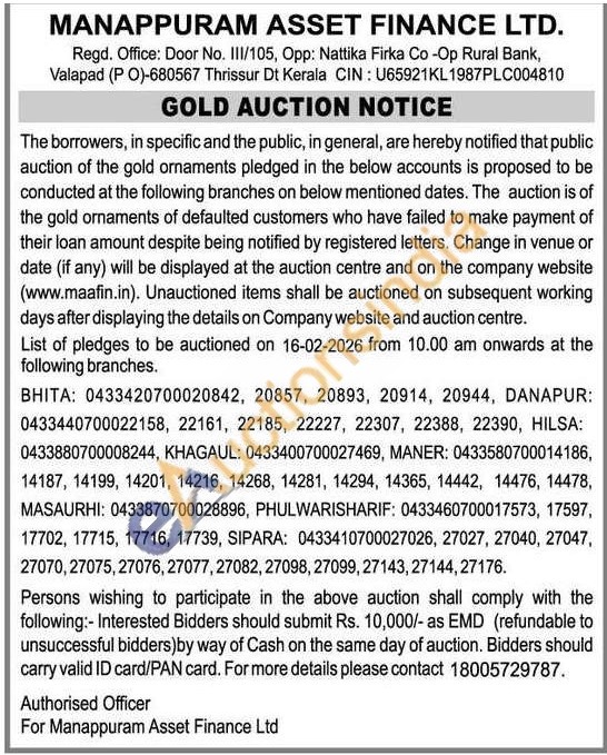 Manappuram Asset Finance Ltd Gold Auctions Auction in Patna
