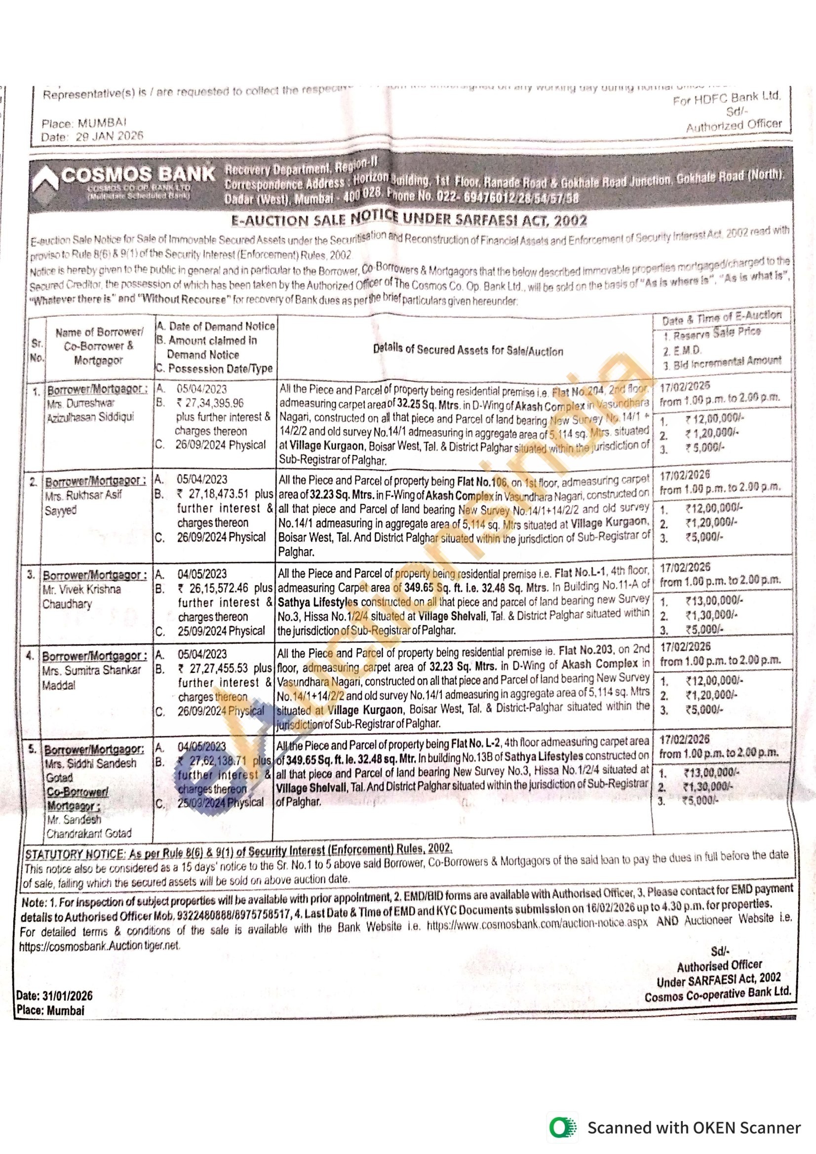 All the Piece and Parcel of property being residential premise i.e. Flat No.L-1, 4th floor, admeasuring Carpet area of 349.65 Sq. ft. Le. 32.48 Sq. Mtrs. In Building No. 11-A of Sathya Lifestyles constructed on all that piece and parcel of land bearing new Survey No.3, Hissa No. 1/2/4 situated at Village Shelvali, Tal. & District Palghar situated within the jurisdiction of Sub-Registrar of Palghar