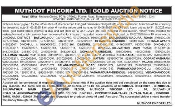 Muthoot Fincorp Ltd Gold Auctions Auction in Dindigul