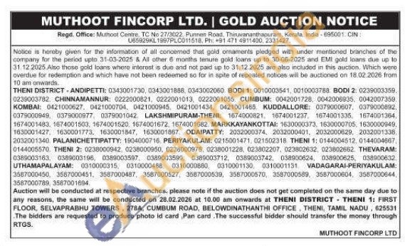 Muthoot Fincorp Ltd Gold Auctions Auction in Theni