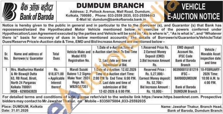 Vehicle Make and Model RTO Registration No : Maruti Suzuki Baleno 1.2 Sigma Make Year: 2024 Regn. No. WB26CA7351