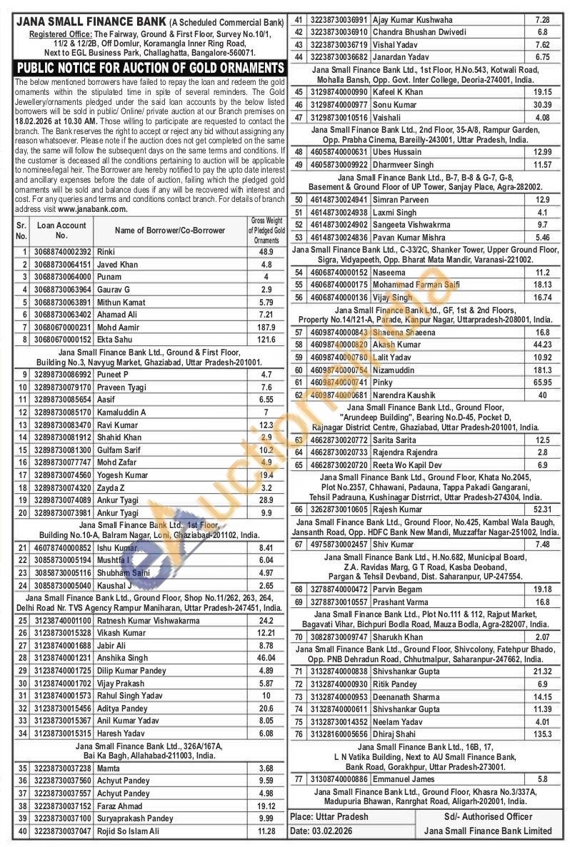 Jana Small Finance Bank Gold Auctions Auction in Ghaziabad