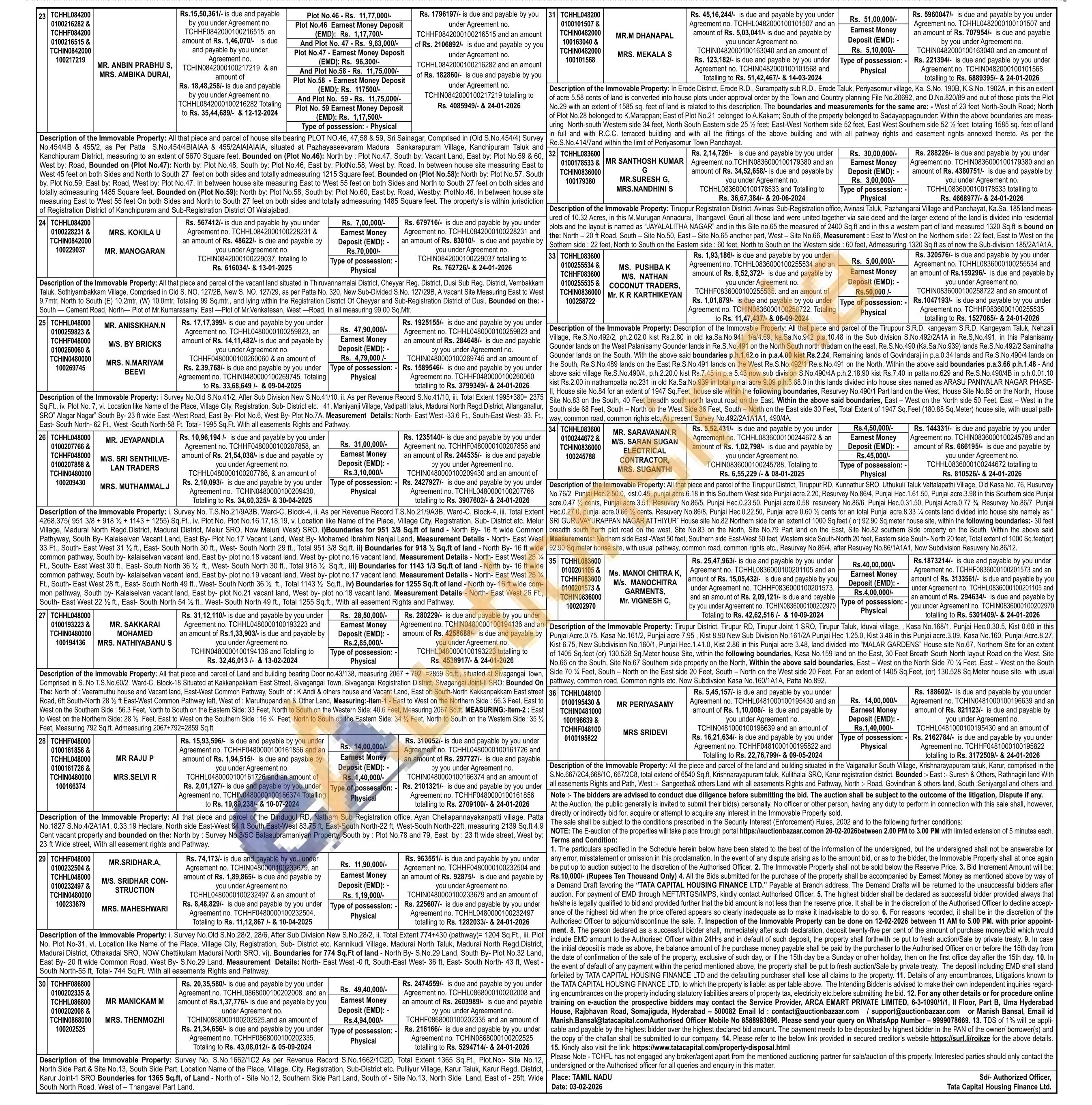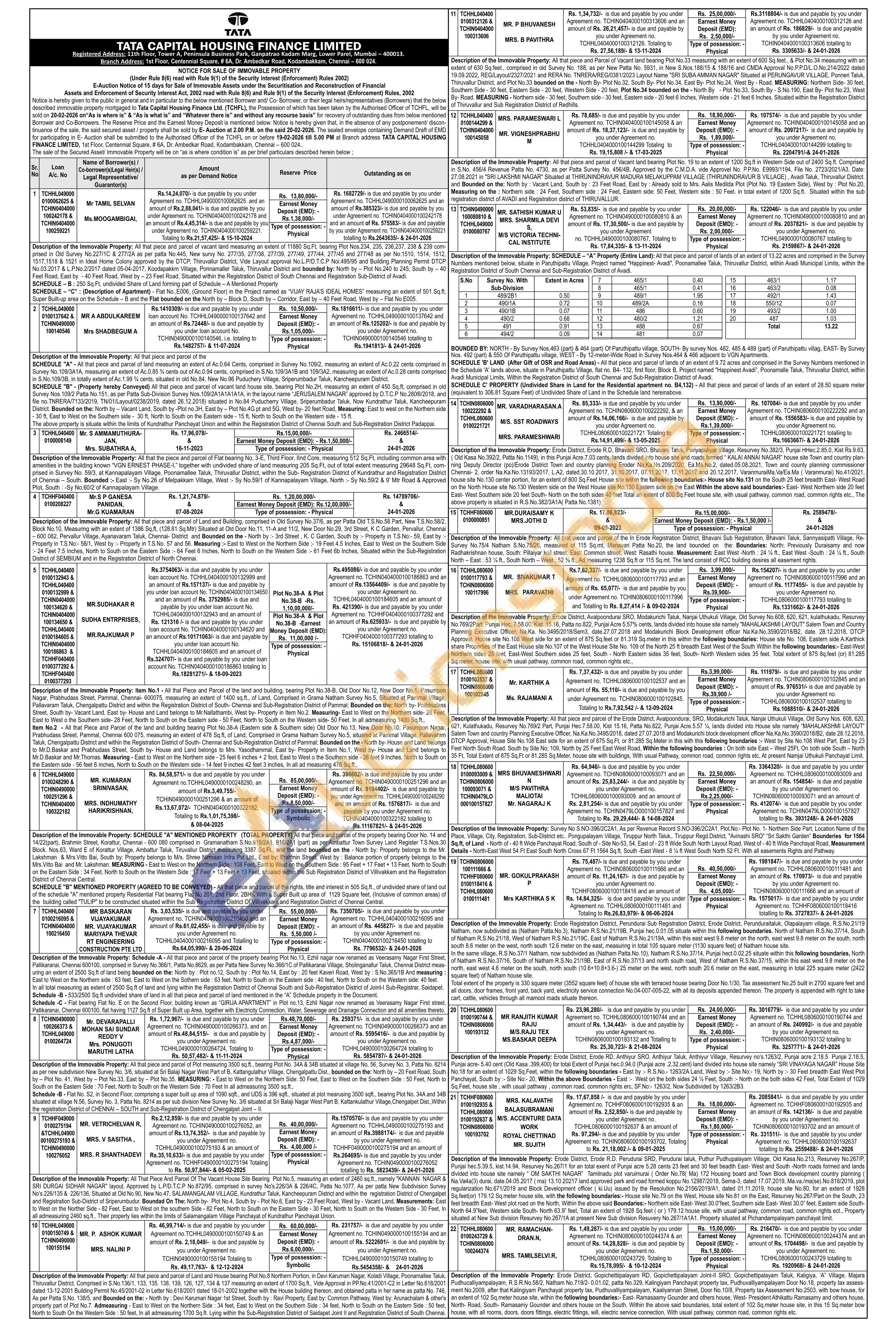 In Erode District, Erode R.D., Surampatty sub R.D., Erode Taluk, Periyasomur village, Ka. S.No. 190B, K.S.No. 1902A, in this an extent of acre 5.58 cents of land is converted into house plots under approval order by the Town and Country planning File No.20692, and D.No.820/89 and out of those plots the Plot No.29 with an extent of 1585 sq. feet of land is related to this description. The boundaries and measurements for the same are: West of 23 feet North-South Road; North of Plot No.28 belonged to K.Marappan; East of Plot No.21 belonged to A.Kakam; South of the property belonged to Sadayappagounder. Within the above boundaries are meas-uring North-south Western side 34 feet, North South Eastern side 25 ½ feet; East-West Northern side 52 feet, East West Southern side 52½ feet; totaling 1585 sq. feet of land in full and with R.C.C. terraced building and with all the fittings of the above building and with all pathway rights and easement rights annexed thereto. As per the Re.S.No.414/7and within the limit of Periyasomur Town Panchayat
