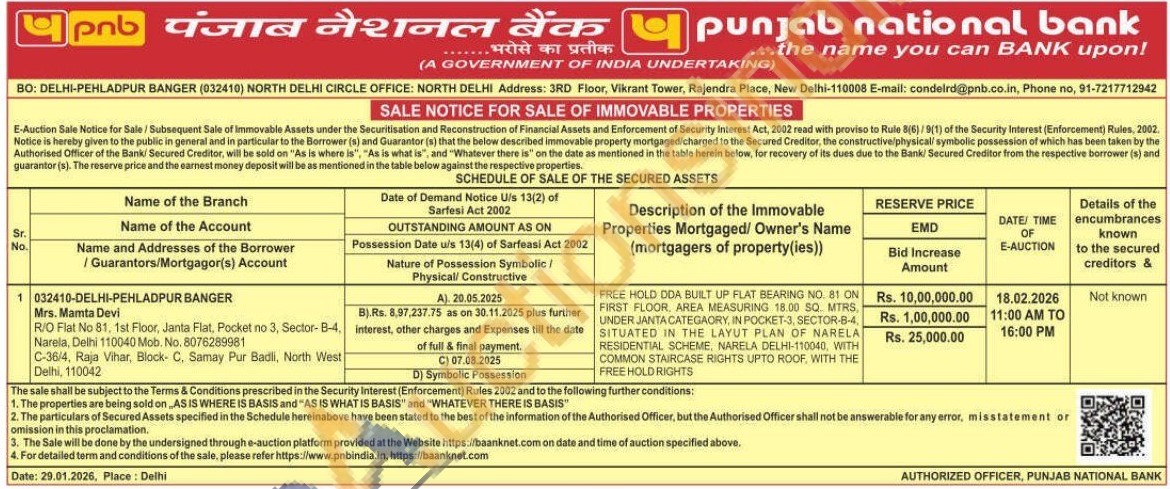 FREE HOLD DDA BUILT UP FLAT BEARING NO. 81 ON FIRST FLOOR AREA MEASURING 18.00 SQ. MTRS.UNDER JANTA CATEGAORY, IN POCKET-3, SECTOR-8-4 SITUATED IN THE LAYUT PLAN OF NARELA