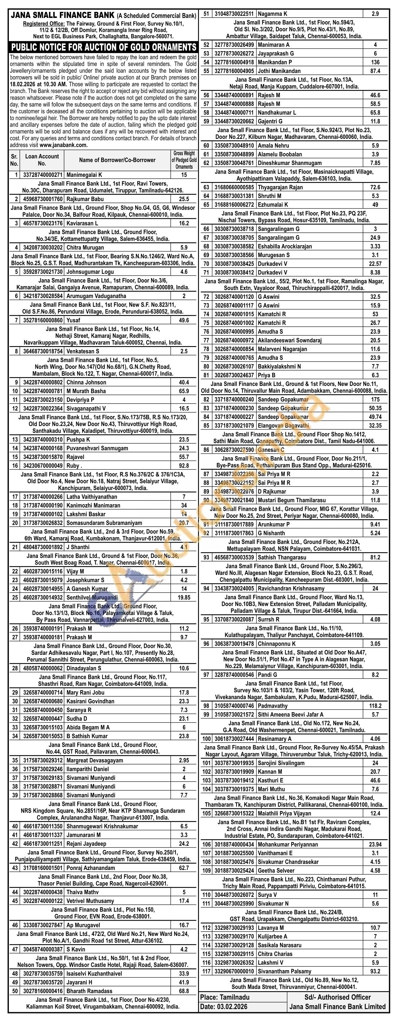 Jana Small Finance Bank Gold Auctions Auction in Tiruppur