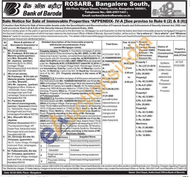 PROPERTY 3: Equitable mortgage of All the piece and parcel of free hold vacant site NO. 152900401801020147, vide Khata No. 268/A at Kootagal Vitage, Ramanagar Taluk measuring East to West 176,82 meters and North to South 9.14 meters in all measuring 1616.13 Square meters or 17396.00 Sq. Ft. East by: Sy. No. 92 West by Road. North by: Other property of Devaraju South by Road Property standing in the name of Mr. Devaraju
