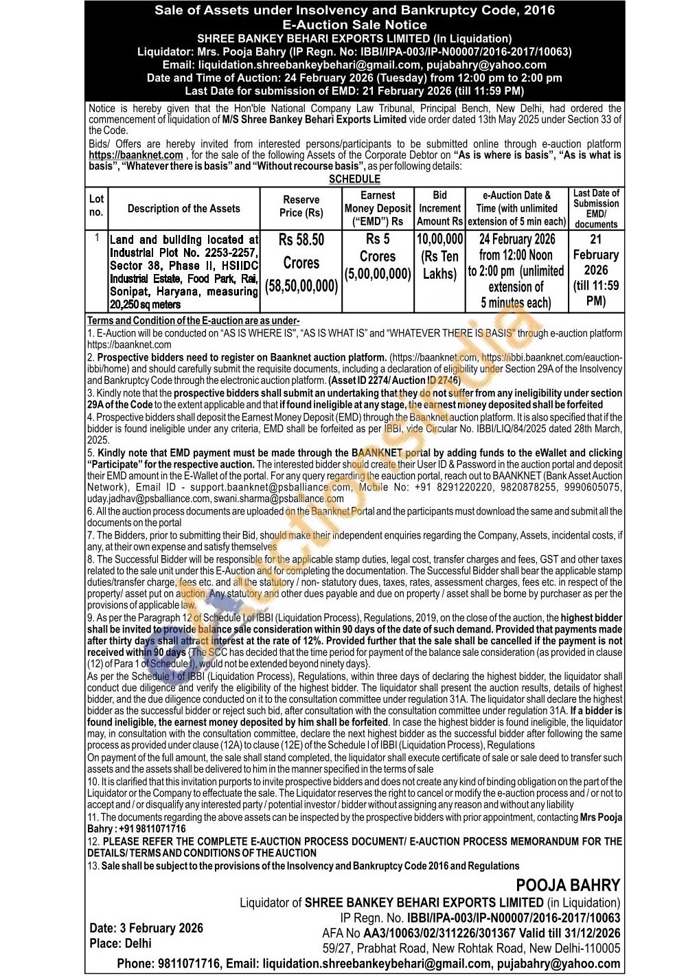Land and building located at Industrial Plot No. 2253-2257, Sector 38, Phase II, HSIIDC Industrial Estate, Food Park, Rai, Sonipat, Haryana, measuring 20,250 sq meters