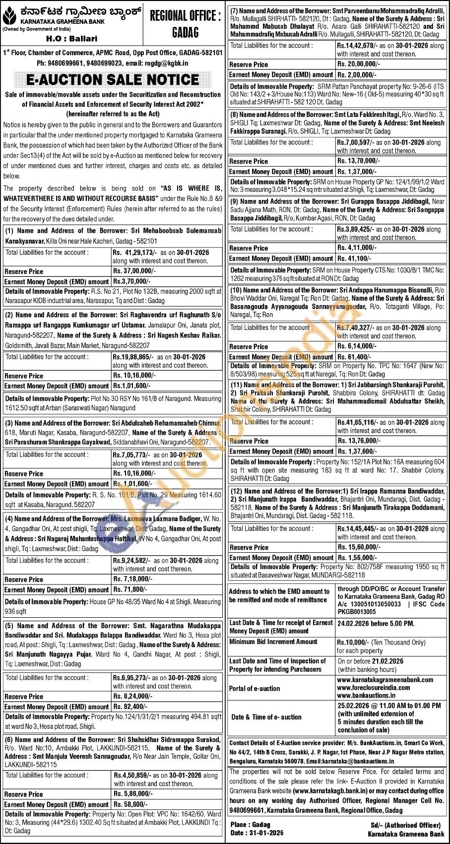 Contact number : 9480699661, 9480699023, email: rogdg@kgbk.in