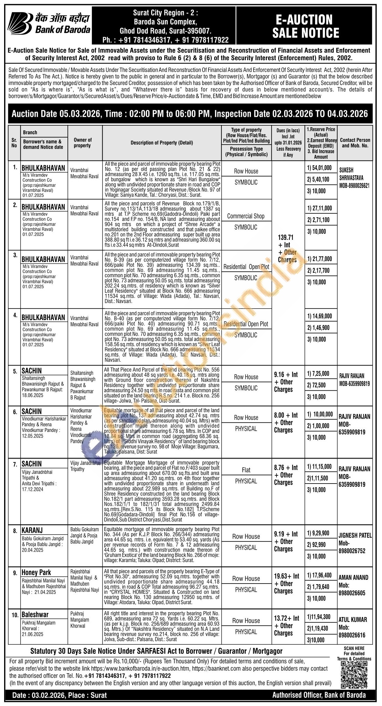All the piece and parcel of immovable property bearing Plot No. B-40 (as per computerized village form No. 7/12, 666/paiki Plot No. 40) admeasuring 90.71 sq.mts., common plot No. 69 admeasuring 11.45 sq.mts.. common plot No. 70 admeasuring 6.35 sq.mts., common plot No. 73 admeasuring 50.05 sq.mts. total admeasuring 158.56 sq.mts. of residency which is known as "Silver Leaf Residency situated at Block No. 666 admeasuring 11534 sq.mts. of Village: Wada (Adada), Tal.: Navsari, Dist.: Navsari.
