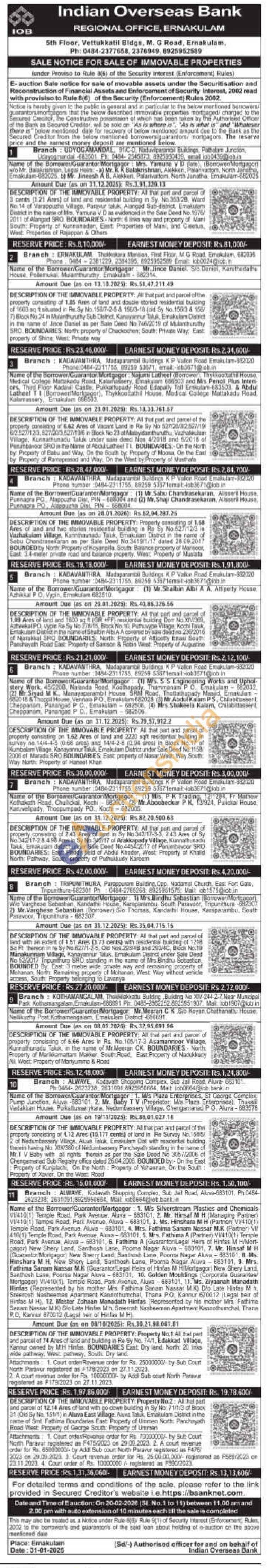 DESCRIPTION OF THE IMMOVABLE PROPERTY: Property No.1 All that part and parcel of 74 Ares of land and building in Re Sy No. 74/1, Edakkad Village, Kannur owned by M.H Hinfas, BOUNDARIES East: Dry land, North: 20 Inka wide pathway, West: pathway, South: Dry land