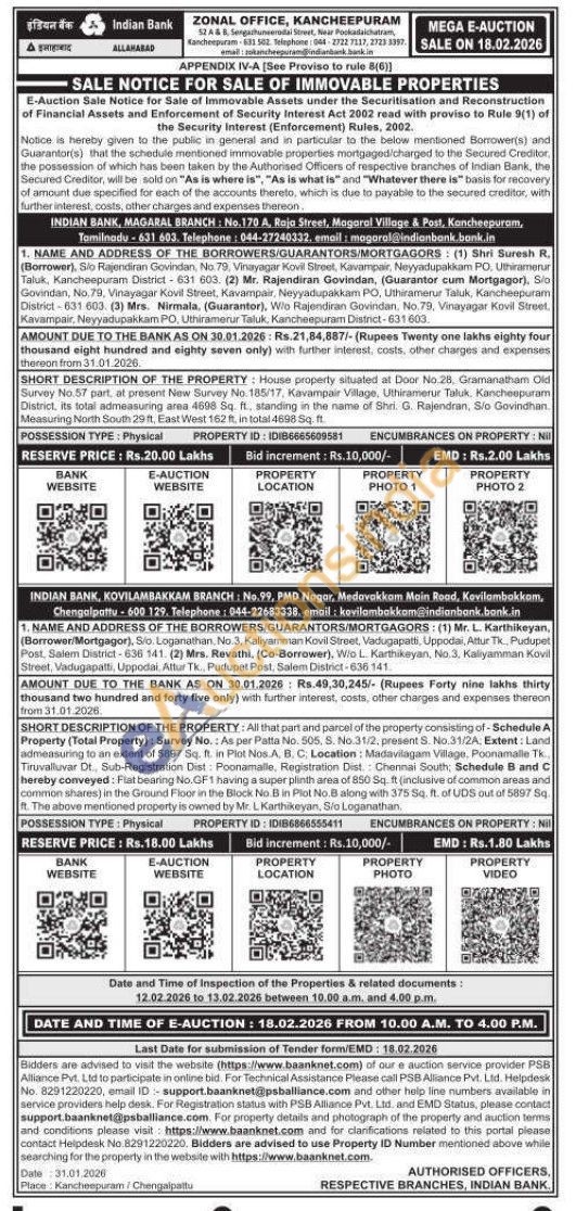Contact no : 044-27240332, email: magaral@indianbank.bank.in