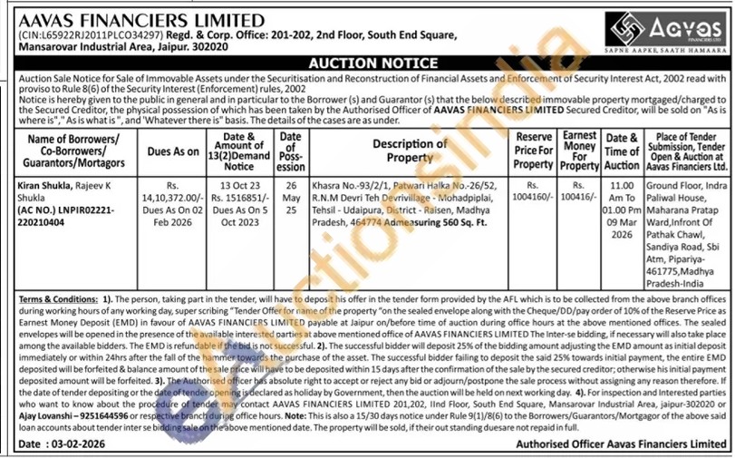 Khasra No.-93/2/1, Patwari Halka No.-26/52, R.N.M Devri Teh Devrivillage - Mohadpiplai, Tehsil Udaipura, District - Raisen, Madhya Pradesh, 464774 Admeasuring 560 Sq. Ft