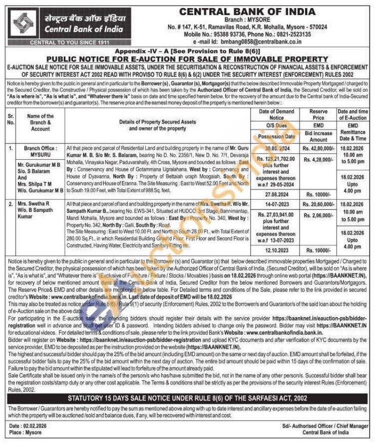All that piece and parcel of Residential Land and building property in the name of Mr. Guru Kumar M. B. Sio Mr. S. Balaram, bearing No D. No. 2356/1, New D. No. 7/1, Devaraja Mohalla, Vinayaka Nagar, Paduvarahally, 4th Cross, Mysore and bounded as follows. East By: Conservancy and House of Gotammana Ugraiahana, West by: Conservancy and House of Dyavanna, North By: Property of Bettaiah uraph Moogaiah, South By: Conservancy and House of Eranna. The Site Measuring: East to West 52.00 Feet and North to South 19.00 Feet, with Total Extent of 988 Sq. feet.