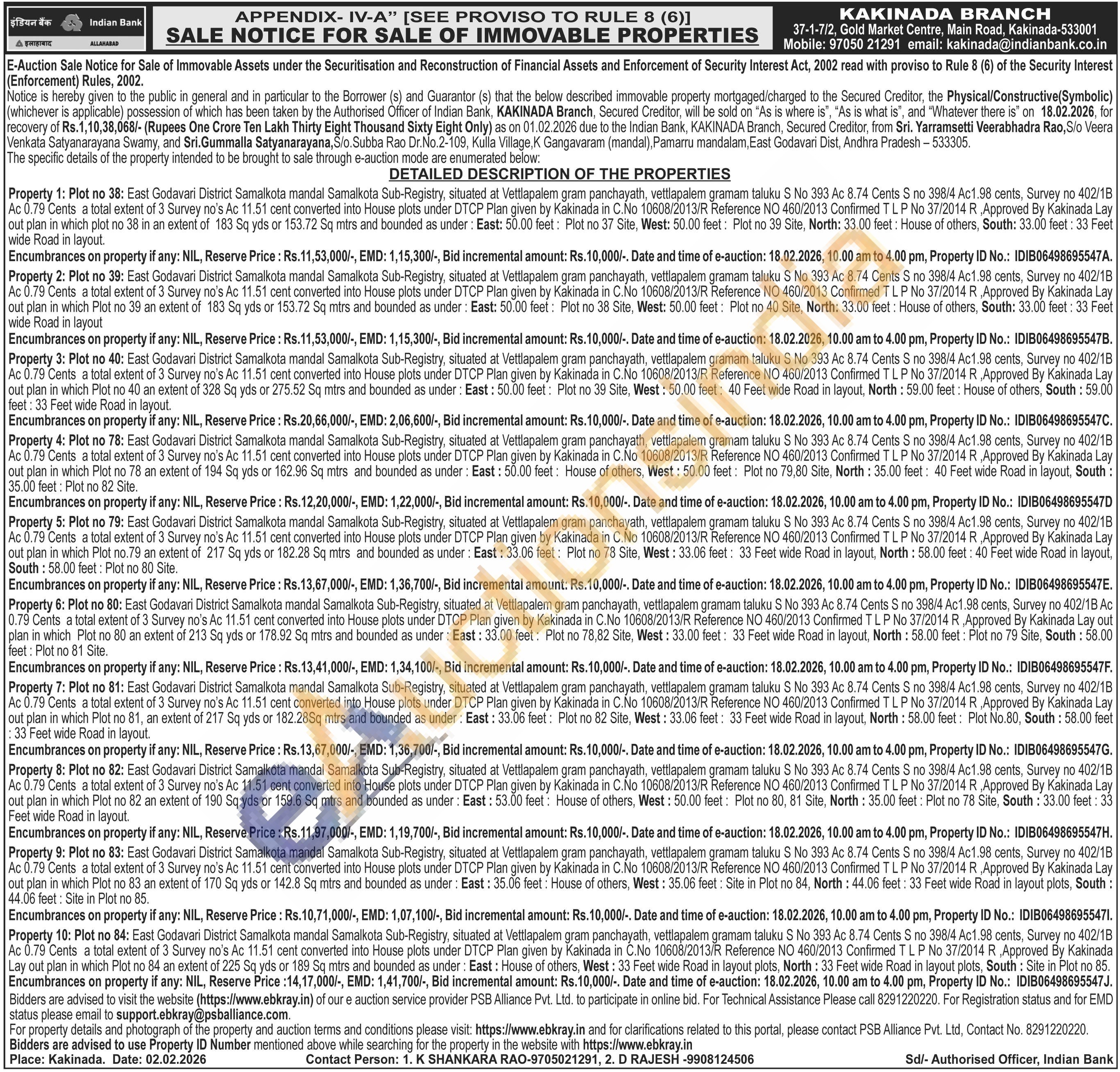 East Godavari District Samalkota mandal Samalkota Sub-Registry, situated at Vettlapalem gram panchayath, vettlapalem gramam taluku S No 393 Ac 8.74 Cents S no 398/4 Ac1.98 cents, Survey no 402/18 Ac 0.79 Cents a total extent of 3 Survey no's Ac 11.51 cent converted into House plots under DTCP Plan given by Kakinada in C.No 10608/2013/R Reference NO 460/2013 Confirmed TLP No 37/2014 R, Approved By Kakinada Lay out plan in which Plot no 78 an extent of 194 Sq yds or 162.96 Sq mtrs and bounded as under: East: 50.00 feet: House of others, West: 50.00 feet: Plot no 79.80 Site, North: 35.00 feet: 40 Feet wide Road in layout, South: 35.00 feet: Plot no 82 Site..