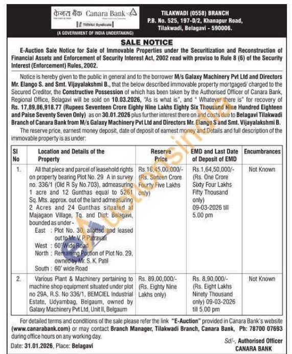 Various Plant & Machinery pertaining to machine shop equipment situated under plot по 29A, R.S. No 336/1, BEMCIEL Industrial Estate, Udyambag, Belgaum, owned by Galaxy Machinery Pvt Ltd, Unit II, Belgaum