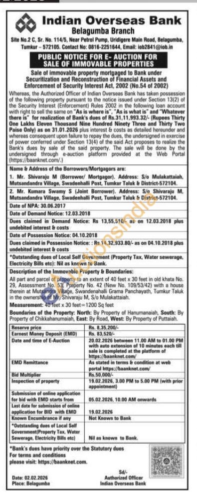 All part and parcel of property to an extent of 40 feet x 30 feet in old khata No. 29. Assessment No. 53, Property No. 42 (New No. 109/53/42) with a house therein at Mutsandra Village, Swandenahalli Grama Panchayath, Tumkur Taluk in the ownership of Mr. Shivaraju M, S/o Mulakattaiah
