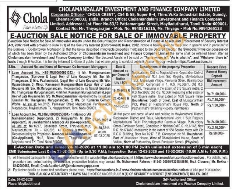 Nagapattinam District, Mayiladuthurai Registration District, Mayiladuthurai No. Joint Sub Registry, Mayiladuthurai Taluk. Mapadugai Village, Pannaiyar Street, Bearing Door No.2/160, Comprised in 1. R.S. No.366/1, Old R.S. No.366, measuring in the extent of 618 Square metre. 2. R.S. No.366/2, Old R.S. No.366, measuring in the extent of 420 Square metre. Total Extent of 1038 Square metre. Boundaries: South of Street, East of Muruganantham Plot, West of Pazhanimathi House Plot North of Pazhanimathi remaining Property (Symbolic)
