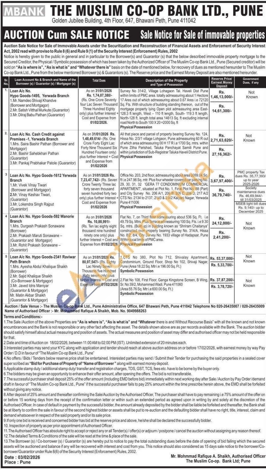 1.CTS No 380, Plot No 712, Shivalay Apartment. Condominium, Ground Floor, Shop No 102, Shivaji Nagar. Pune (Area 18:22 Sq. Mtri.e 196.00 Sq. Ft.) Symbolic Possession