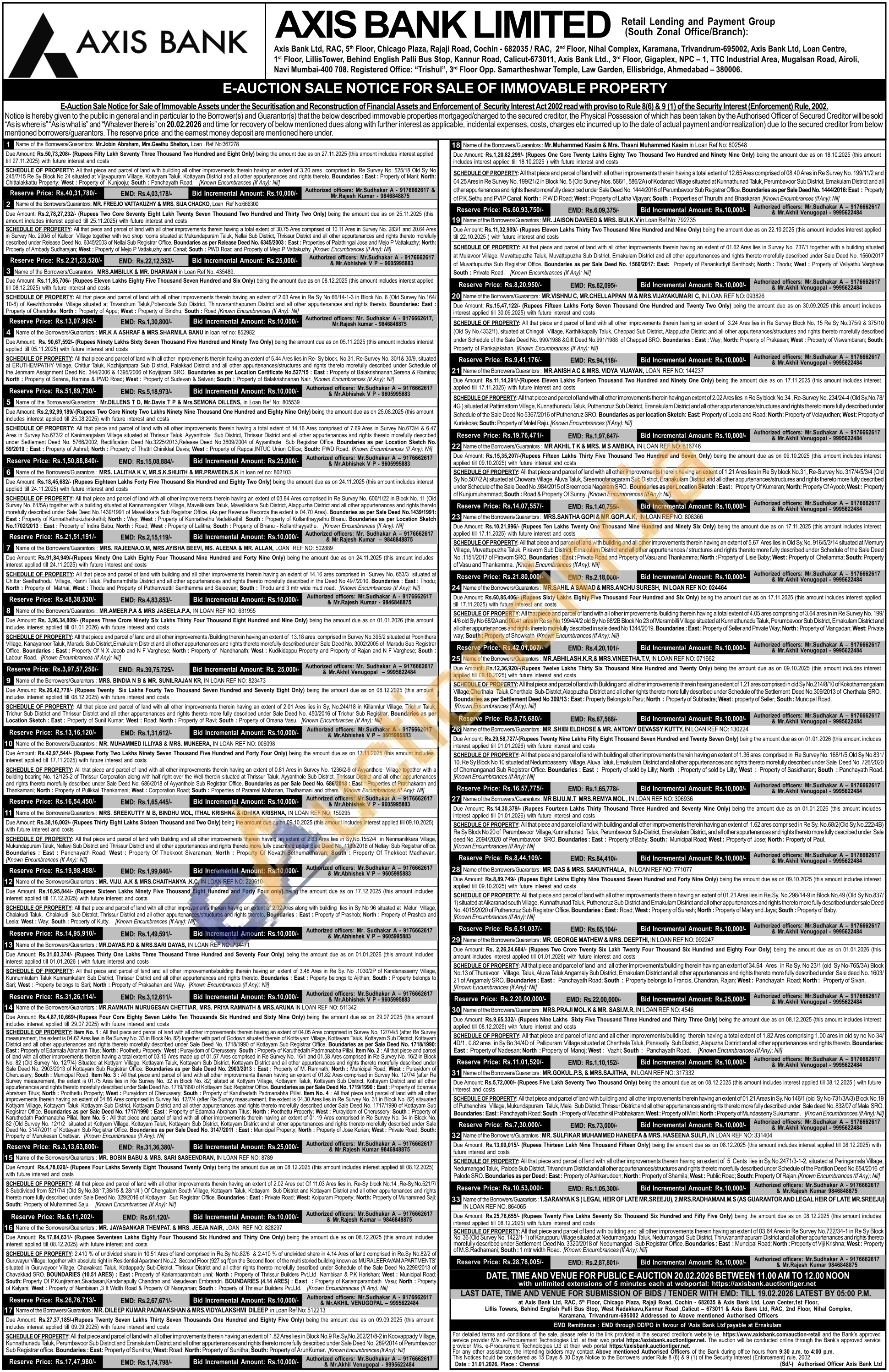 Contact Authorized officers: Mr.Sudhakar A- 9176662617 & Mr.AKHIL VENUGOPAL 9995622484