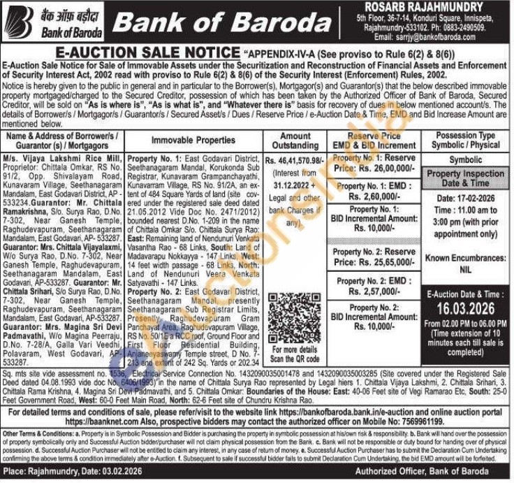 Property No. 2: East Godavari District, Seethanagaram Mandal, presently Seethanagaram Sub Registrar Limits, Presently Raghudevapuram Gram Panchayat Area, Raghudevapuram Village, RS No. 50/1E a RCC roof, Ground Floor and First Floor Residential Building, Anjaneeyaswamy Temple street, D No. 7-213 and extent of 242 Sq. Yards or 202.34 Sq. mts site vide assessment no. 1536, Electrical Service Connection No. 1432090035001478 and 1432090035003285 (Site covered under the Registered Sale Deed dated 04.08.1993 vide doc No. 6406/1993) in the name of Chittala Surya Rao represented by Legal hiers 1. Chittala Vijaya Lakshmi, 2. Chittala Srihari, 3. Chittala Rama Krishna, 4. Magina Sri Devi Padmavathi, and 5. Chittala Omkar: Boundaries of the House: East: 40-06 Feet site of Vegi Ramarao Etc, South: 25-0 Feet Government Road, West: 60-0 Feet Main Road, North: 62-6 Feet site of Chundru Krishna Rao