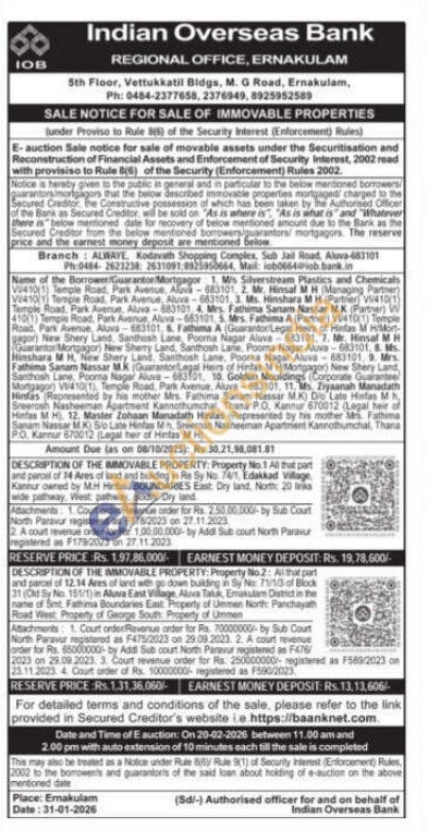 Contact Branch: ALWAYE, Ph:0484-2622230 2631091 0925950664