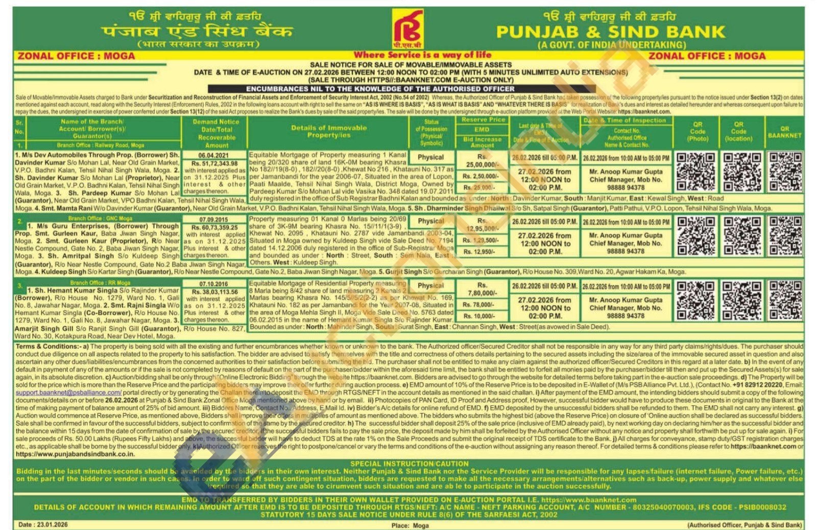 3) Equitable Mortgage of Residential Property measuring 8 Marla being 8/42 share of land measuring 2 Kanals 2 Marlas bearing Khasra No. 145/5//5/2(2-2) as per Khewat No. 169, Khatauni No. 182 as per Jamanbandi for the Year 2007-08, Situated in the area of Moga Mehla Singh II, Moga Vide Sale Deed No. 5763 dated 06.02.2015 in the name of Hemant Kumar Singla Sio Rajinder Kumar. Bounded as under: North: Mahinder Singh, South: Surat Singh, East Channan Singh, West: Street(as avowed in Sale Deed