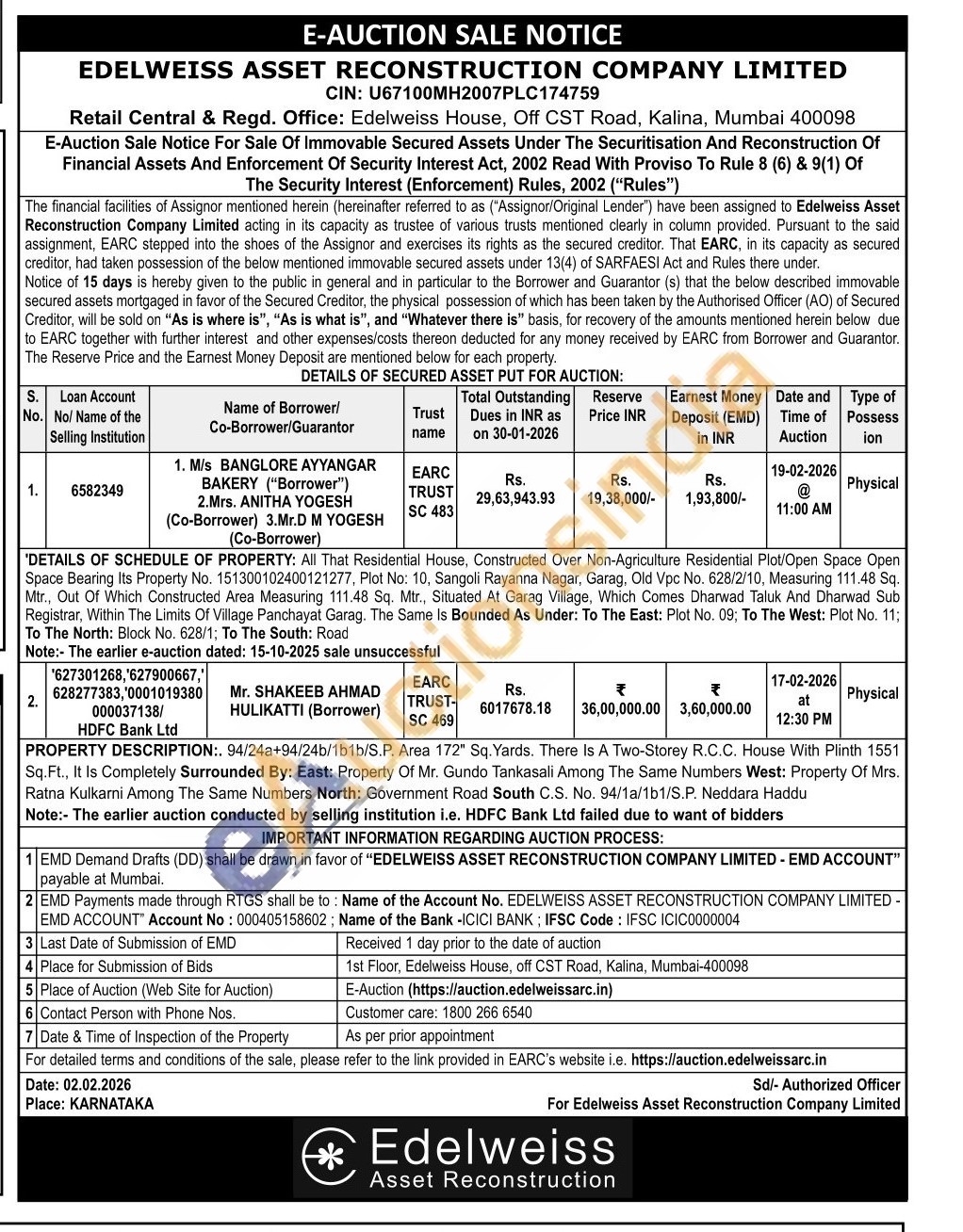 auction conducted by selling institution i.e. HDFC Bank Ltd failed due to want of bidders