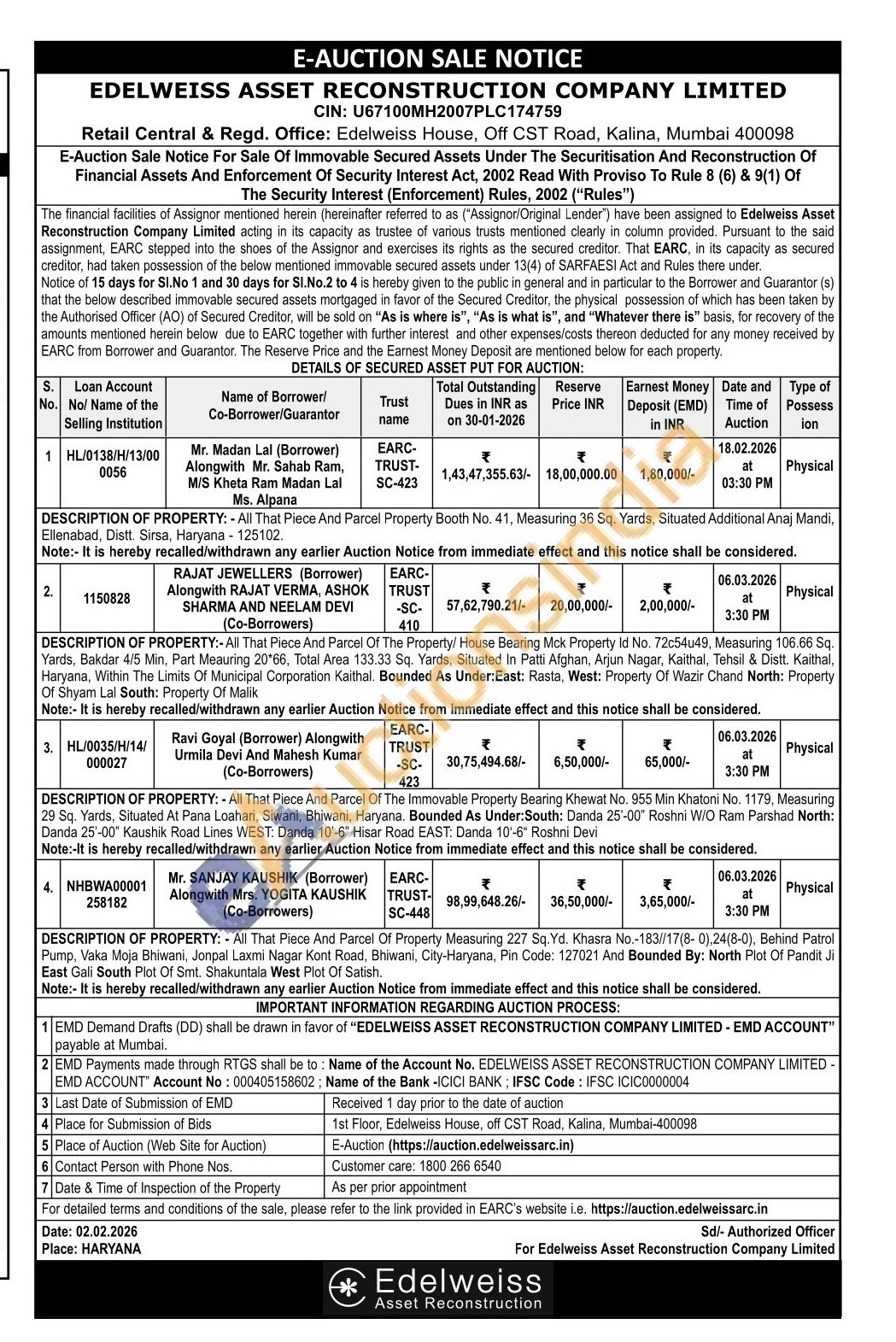 DESCRIPTION OF PROPERTY:- All That Piece And Parcel Of The Property/House Bearing Mck Property Id No. 72c54u49, Measuring 106.66 Sq. Yards, Bakdar 4/5 Min, Part Meauring 20*66, Total Area 133.33 Sq. Yards, Situated In Patti Afghan, Arjun Nagar, Kaithal, Tehsil & Distt. Kaithal, Haryana, Within The Limits Of Municipal Corporation Kaithal. Bounded As Under: East: Rasta, West: Property Of Wazir Chand North: Property Of Shyam Lal South: Property Of Malik Note:- It is hereby recalled/withdrawn any earlier Auction Notice from immediate effect and this notice shall be considered