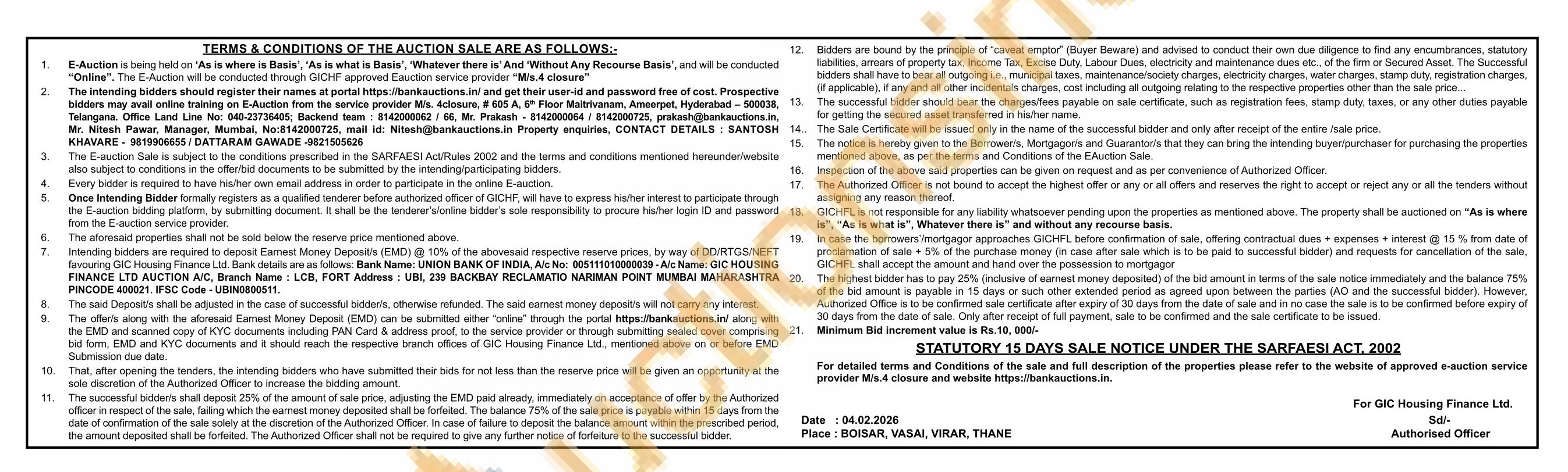 Contact Authorised Person: SANTOSH KHAVARE - 9819906655/AUTHORIZED OFFICER: DATTARAM GAWADE -9821505626