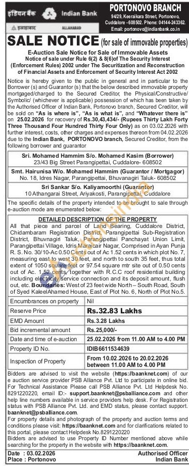 All that piece and parcel of Land Bearing, Cuddalore District,