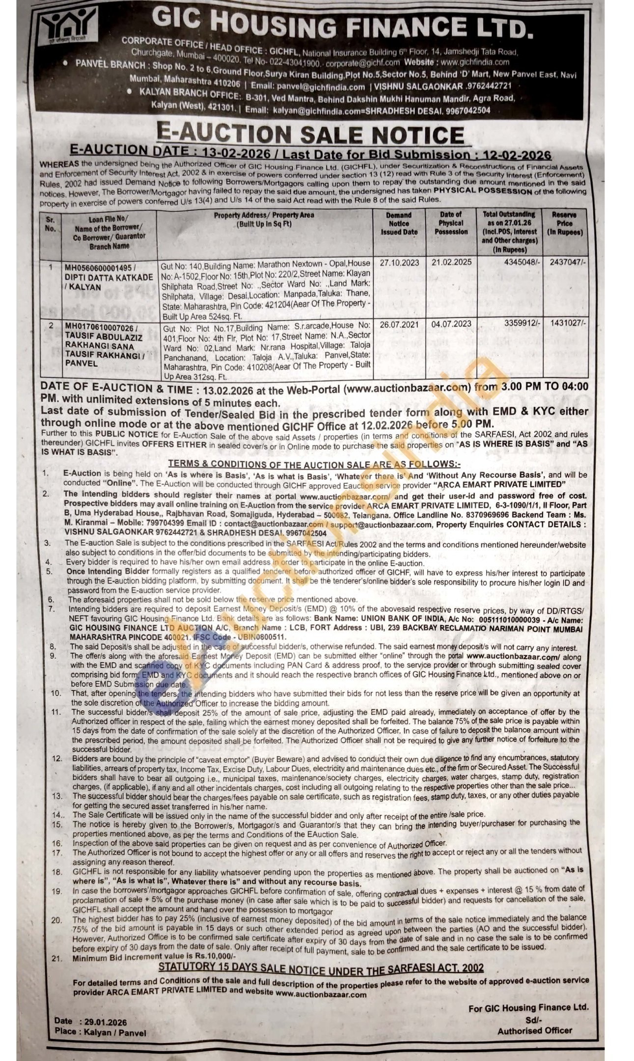 Gut No Plot No 17, Bulding Name: Srarcade, House No: 401 Floor No 4th Fir Plot No 17.Street Name N.A., Street NA Sector Ward No: 02. Lanc Mark: Norana Hospital Village: Taloja Panchanand Location Taloja A V, Taluka Panvel State Maharashtra, Pin Code: 410208 Awar Of The Property-Bult Up Ares 312sq. Ft