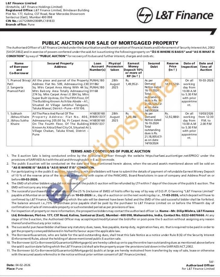 All The Piece And Parcel Of The Property Address: Flat No. 406, Admeasuring 205.00 Sq. Ft Carpet Area, On The Fourth Floor, Of The Building Known As Xrbia Eifeel City C4, Situated At Village Chakan, Taluka Khed, District Pune -