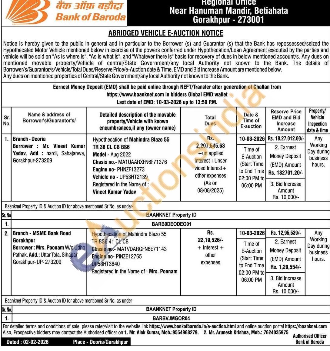 Authorised officer on 1. Mr. Alok Kumar, Mob.:9554968279. 2. Mr. Arunesh Krishna, Mob.: 7624035975