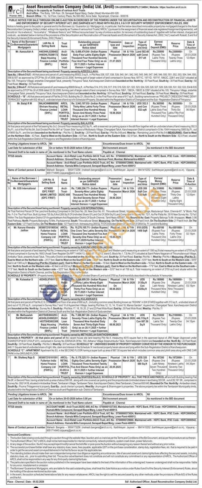 2) All that piece and parcel of the Flat bearing No.G-2, Ground Floor measuring 832 Sq Ft., with a reserved car parking space in the soit floor together with an undivided share of land measuring 352.5 Sq.Ft., out of the Plot No.BA, Sub Divided Plot No 9A1 at "Ocean Side" layout of Muttukadu Village, Chengalpet Taluk, Kancheepuram District.comprised in S.No. 104/4 measuring 3565 Sq. Ft., out of 9600 Sq. FL and the land bounded on the North by: Plot No. 12, South by: 20 Feet Road, East by: Plot No 9-8 and, West by: Remaining Land in Plot No.S-A MEASURING: East to West on the Northern Side: 43 Feet, East to West on the Southern Side: 43 Feet, North to South on the Eastern Side: 82.9 Feet.. North to South on the Western Side: 82.9 Feet, situated within the Sub Registration District of Thirupporur and Registration District of Kanchipuram,