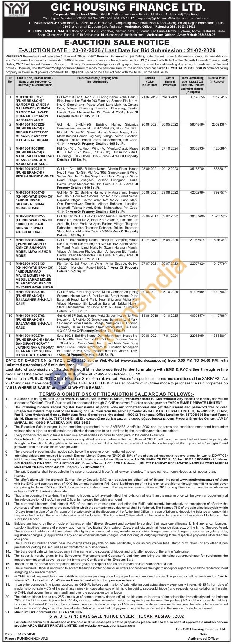 PUNE BRANCH Authorised Officer: Rajendra Giri: 9552161428 / CHINCHWAD BRANCH Authorised Officer: Amey Mairal: 9834833606