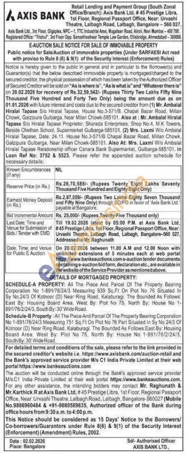 SCHEDULE-A PROPERTY: All The Piece And Parcel Of The Property Bearing Corporation No 1-891/76/24/3 Measuring 939 Sq.Ft On Plot No 76 Situated In Sy No.24/3 Of Kotnoor (D) Near Ring Road, Kalaburagi. The Bounded As Follows: East By: Housing Board Area, West By: Plot No 75, North By: House No 1-891/76/2/24/3, South By: 30' Wide Road. Schedule-B Property: All The Piece And Parcel Of The Property Bearing Corporation No 1-891/76/24/3 Measuring 751 Sq.Ft On Plot No 76 Part Situated in Sy No 24/3 Of Kotnoor (D) Near Ring Road, Kalaburagi. The Bounded As Follows. East By: Housing Board Area West By: Plot No 75, North By: House No 1-891/76/2/24/3, South By: 30 Wide Road