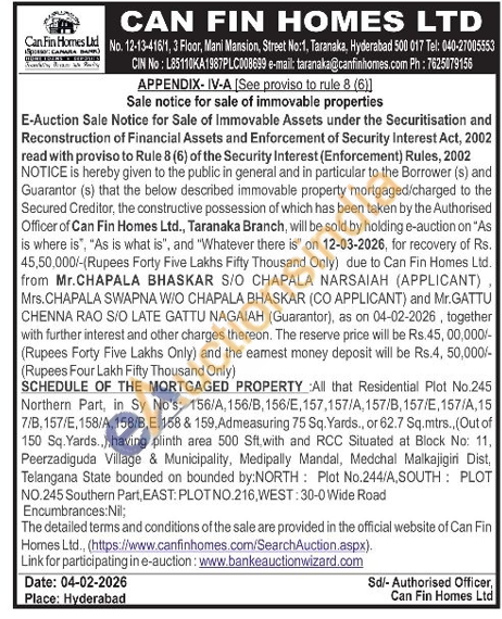 Contact mail: taranaka@canfinhomes.com Ph: 7625079156