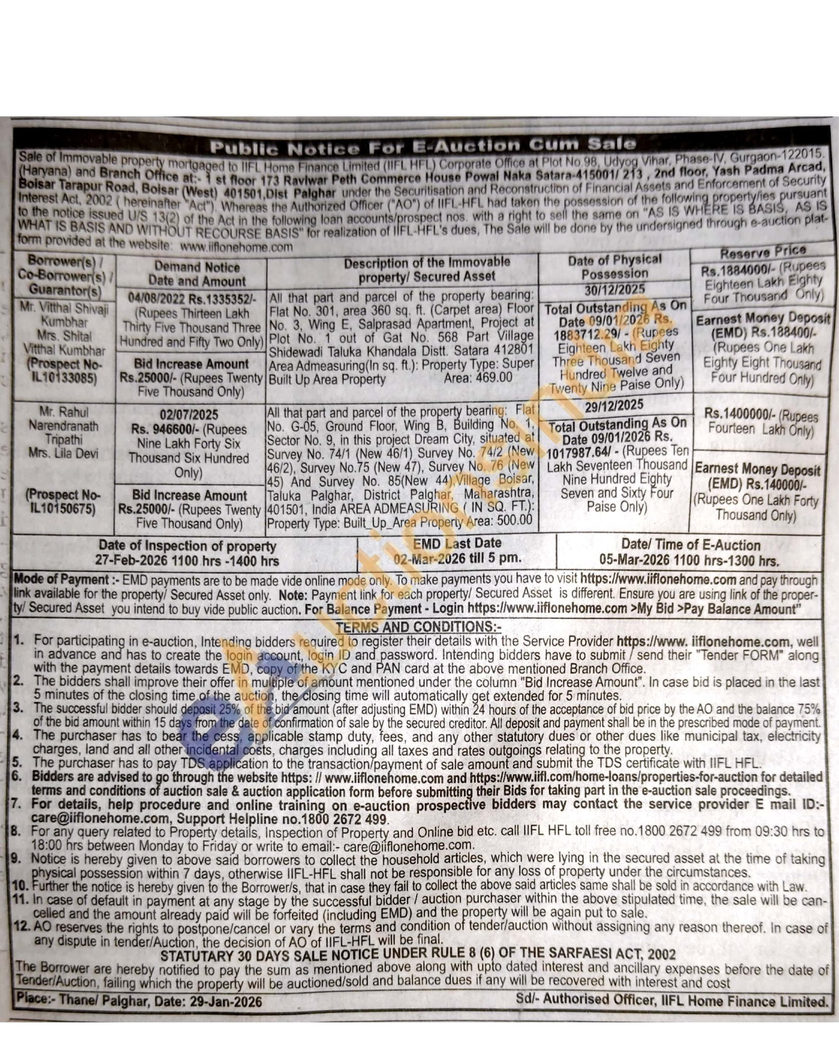 All that part and parcel of the property bearing: Flat No. G-05, Ground Floor, Wing B, Building No. 1. Sector No. 9, in this project Dream City, situated at Survey No. 74/1 (New 46/1) Survey No. 74/2 (New 46/2), Survey No.75 (New 47), Survey No. 76 (New 45) And Survey No. 85(New 44), Village Boisar, Taluka Palghar, District Palghar, Maharashtra, 401501, India AREA ADMEASURING (IN SQ. FT.): Property Type: Built Up_Area Property Area: 500.00