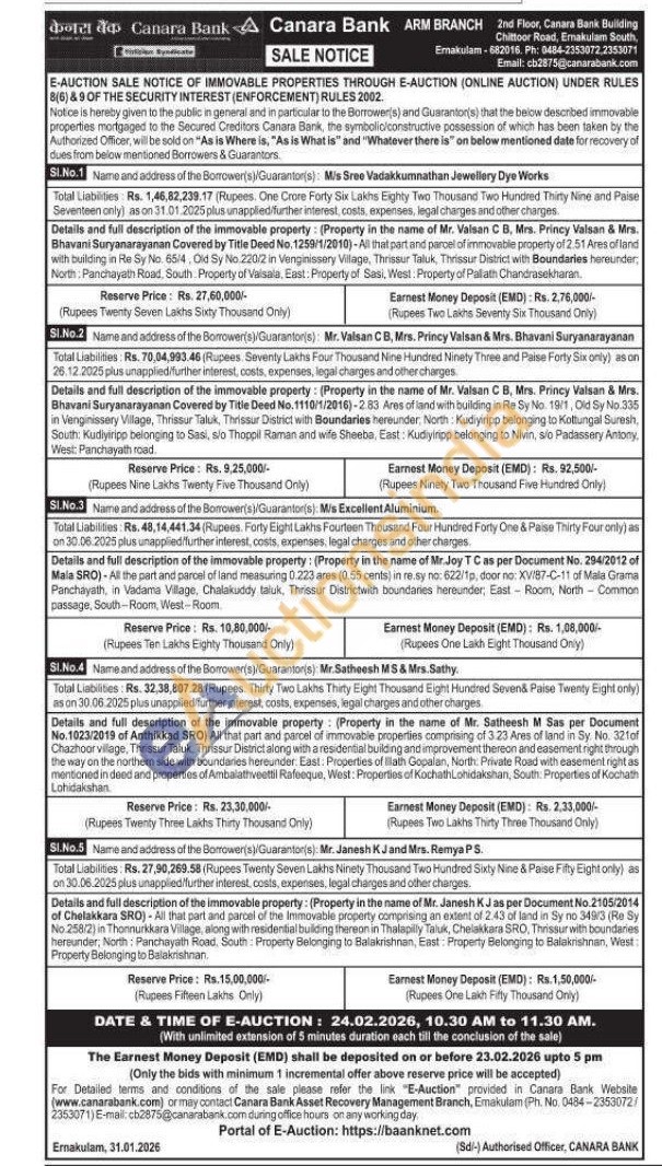 3) All the part and parcel of land measuring 0.223 ares (0.55 cents) in re.sy no: 622/1p, door no: XV/87-C-11 of Mala Grama Panchayath, in Vadama Village, Chalakuddy taluk, Thrissur Districtwith boundaries hereunder; East Room, North Common passage, South-Room, West-Room