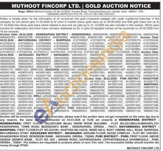 Muthoot Fincorp Ltd Gold Auctions Auction in Kendrapara