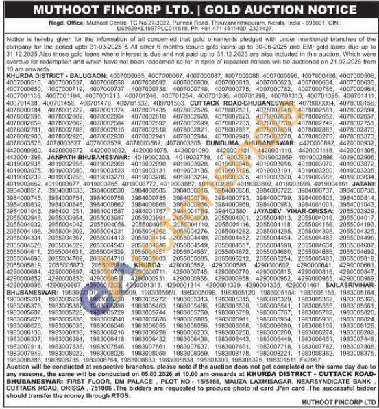 Muthoot Fincorp Ltd Gold Auctions Auction in Khurda