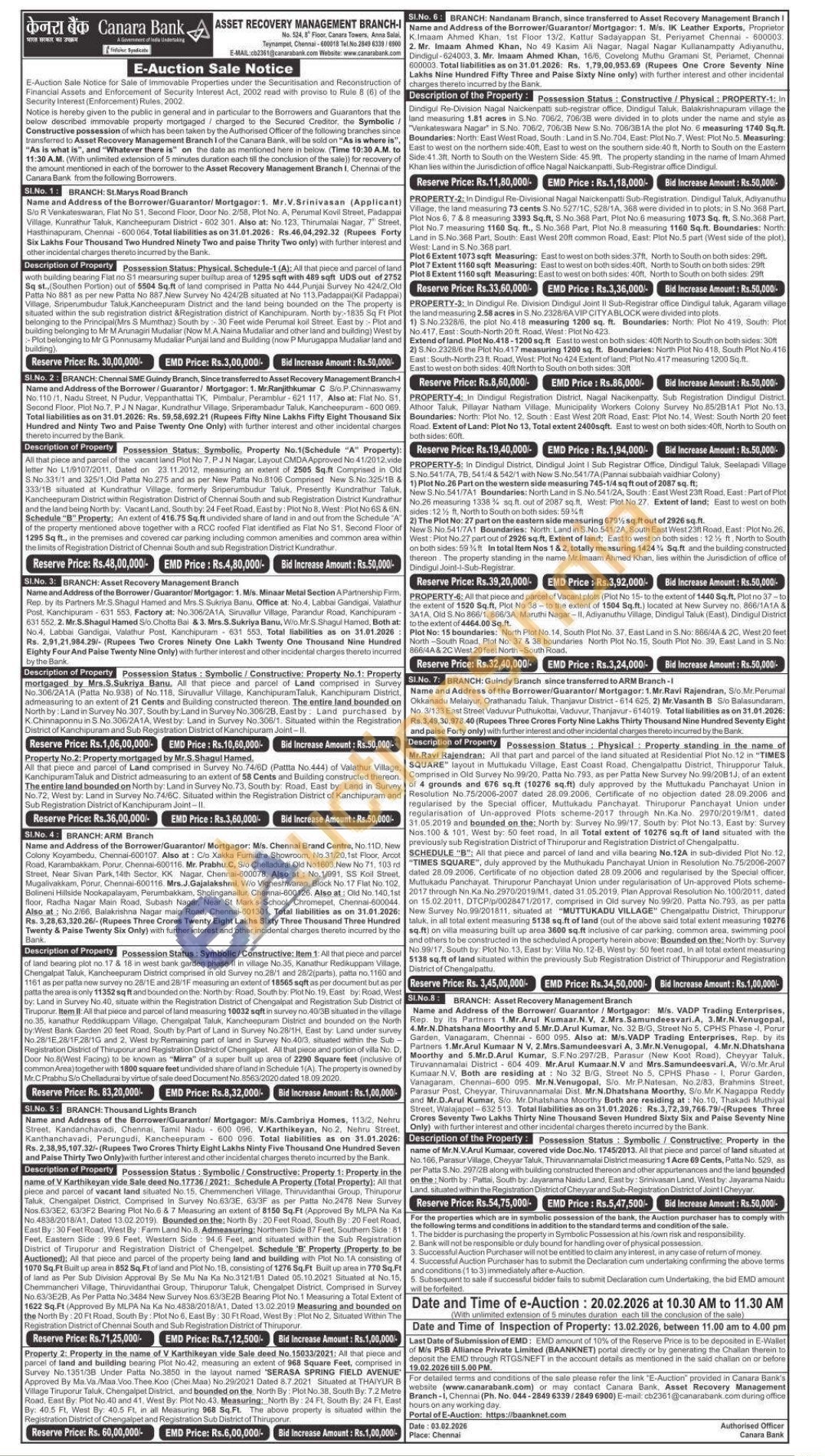 8) All that piece and parcel of land situated at No. 166, Parasur Village, Cheyyar Taluk, Thiruvannamalai District measuring 1 Acre 69 Cents, Patta No. 529, as per Patta S.No. 297/28 along with building constructed thereon and other appurtenances and the land bounded on the North by: Pattai, South by: Jayarama Naidu Land, East by: Srinivasan Land, West by: Jayarama Naidu Land, situated within the Registration District of Cheyyar and Sub-Registration District of Joint I Cheyyar.