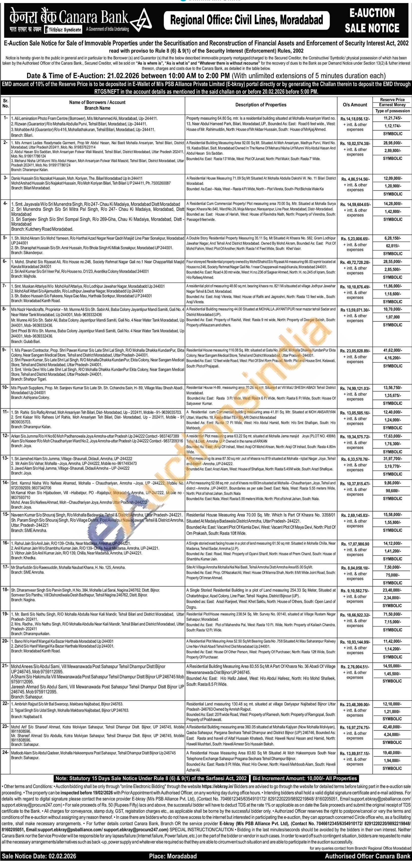 A Residential Cum Commercial Property/ Plot measuring area 70.00 Sq. Mtr. Situated at Mohalla Surya Nagar, Khasra No.640, Ward No.26, Moja Manpur, Narayanpur, Line Paar, Moradabad, Distr-Moradabad. Bounded as: East: House of Harish, West: House of Ravindra Nath, North: Property of Virendra, South: Passage 9 feet wide.