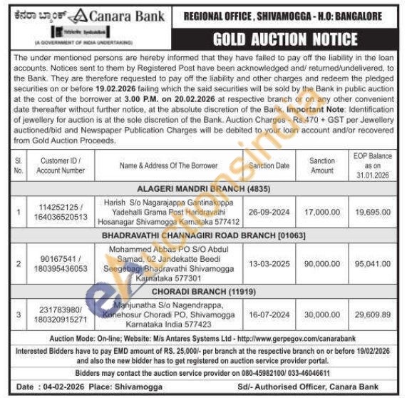 Canara Bank Gold Auctions Auction in Shivamogga