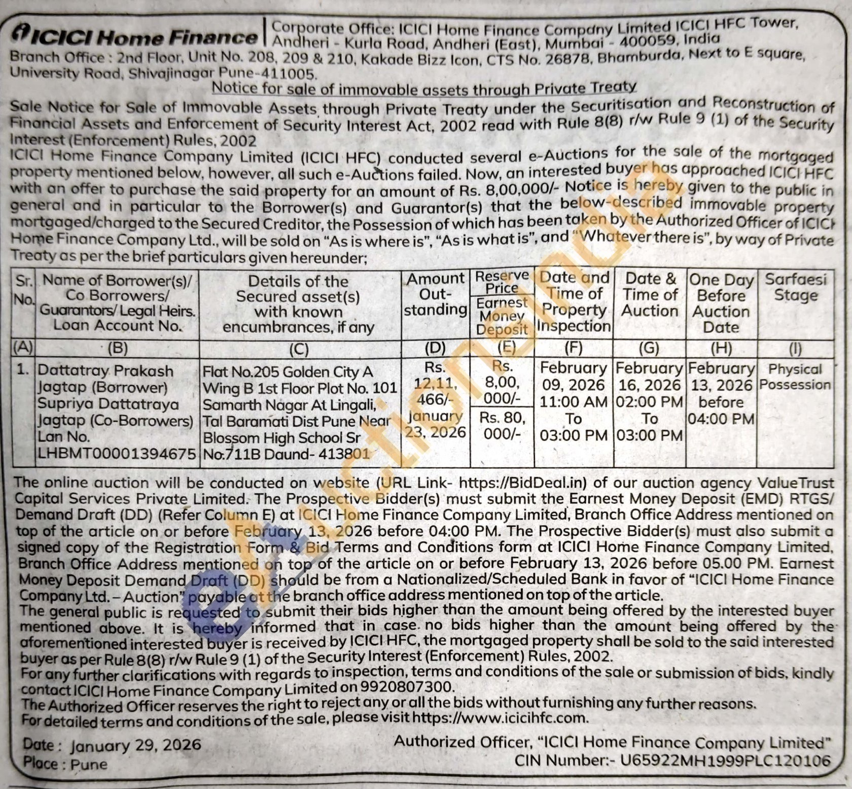 Flat No.205 Golden City A Wing B 1st Floor Plot No. 101 Samarth Nagar At Lingali, Tal Baramati Dist Pune Near Blossom High School Sr No.711B Daund-413801