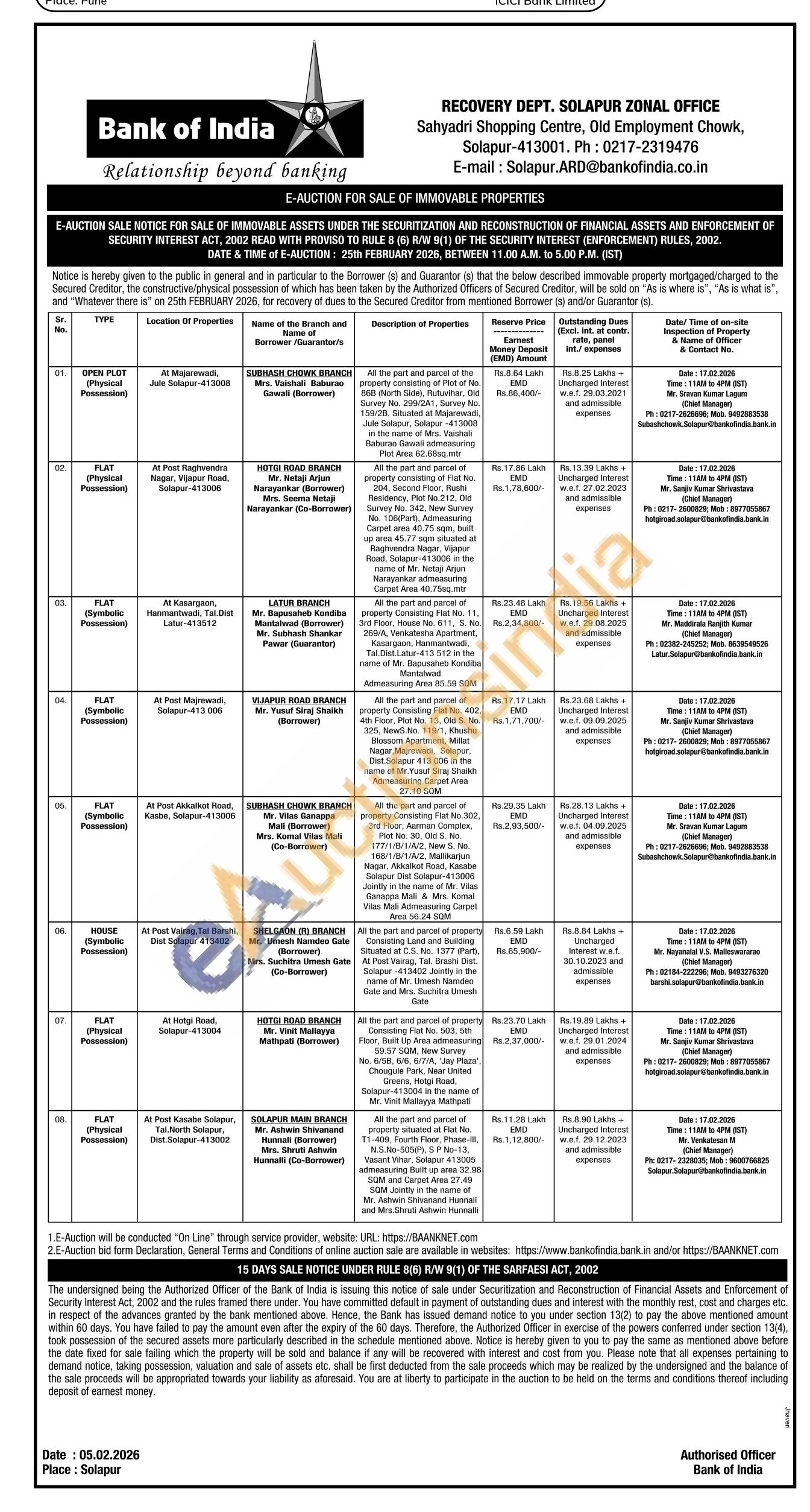 Mr. Maddirala Ranjith Kumar (Chief Manager) Ph: 02382-245252; Mob. 8639549526 Latur.Solapur@bankofindia.bank.in