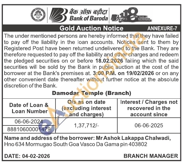 Bank of Baroda Gold Auctions Auction in Goa